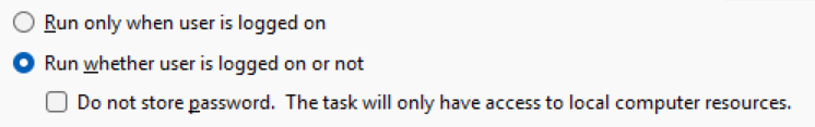 But, why wasn't it working? Because, I had no password. Why did I have no password? Because, my account was forced to be linked to my Microsoft account, and my Microsoft account was strongly recommended to be made "passwordless" for great security, remember? Great, now I have no password that I could store in Task Scheduler.